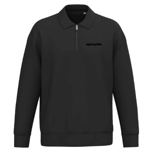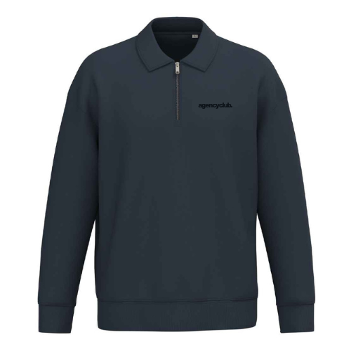 Overstitched polo neck with recycled metal quarter-zip opening.